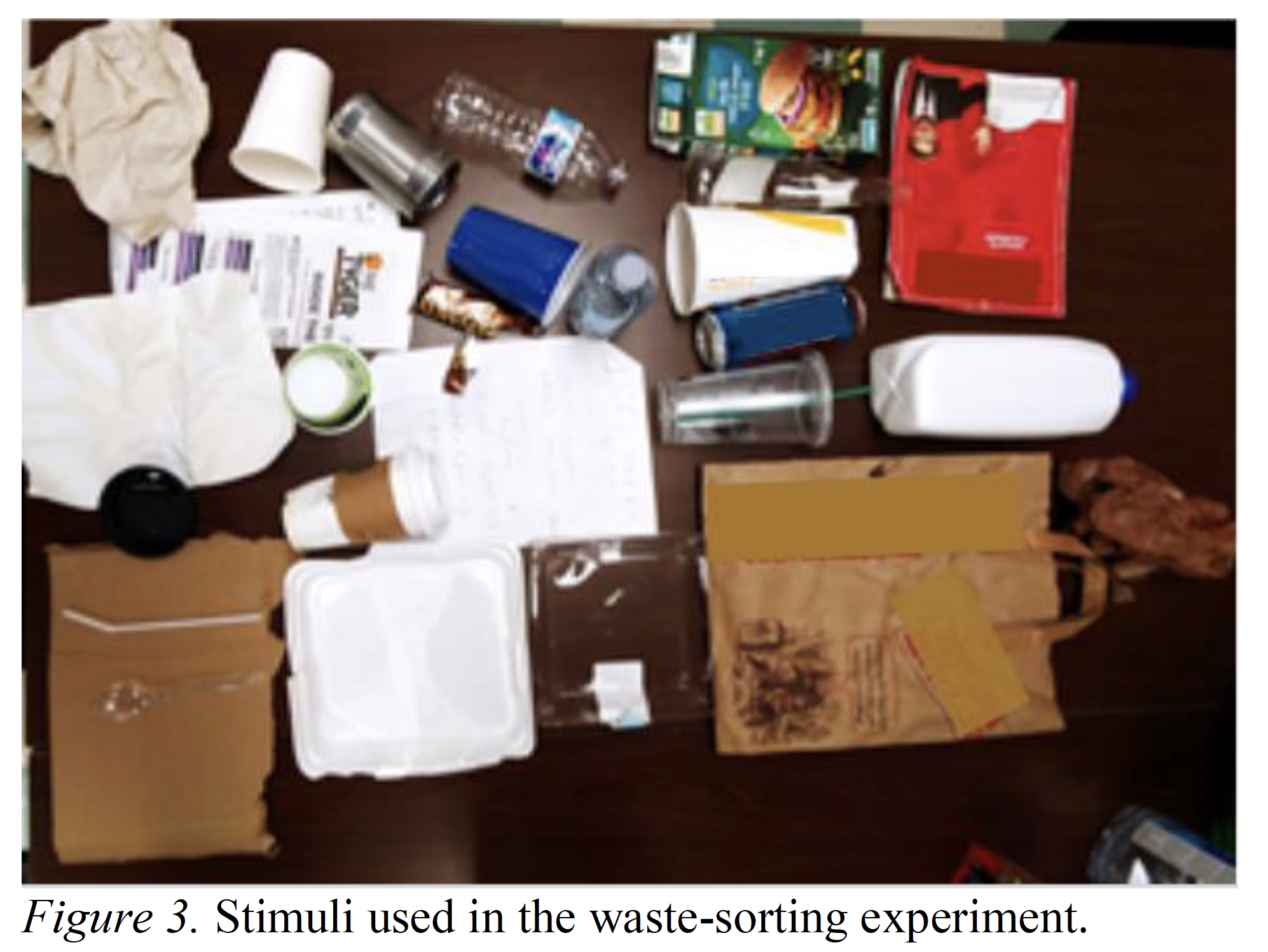 Rasmussen MB, Pagels KØ, Ramanujan D. ‘Supporting Household Waste Sorting Practices by Addressing Information Gaps’. J. Comput. Inf. Sci. Eng. 20(4), 041013. [DOI]. [Understanding existing waste sorting practices among 180 Danish residents. Respondents felt they needed additional waste sorting information. Respondents had fewer inaccuracies disposing items within a single waste stream.]. Minelgaitė A, Liobikienė G. ‘The problem of not waste sorting behaviour, comparison of waste sorters and non-sorters in European Union: Cross-cultural analysis’. Science of the Total Environment. 672, 174-182. [DOI]. [The level of non-sorter behaviour depends on the economic development. Sorting behaviour insignificantly depends on knowledge about waste generation. The tools which convince to separate waste differed between sorters and non-sorters (n=26550).]. Nainggolana D, Pedersen AB, Smed S, Zemo KH, Haslera B, Termansen M. ‘Consumers in a Circular Economy: Economic Analysis of Household Waste Sorting Behaviour’. Ecological Economics. 166, 106402. [DOI]. [Households express different preferences towards the practical design of waste sorting systems.]. Nemat B, Razzaghi M, Bolton K, Rousta K. ‘The Role of Food Packaging Design in Consumer Recycling Behavior—A Literature Review’. Sustainability. 11, 4350. [DOI]. [Review: the potential of the visual attributes and the quality of packaging as a communication channel for encouraging consumers to sort the food packaging waste. Due to the confusion and complexity within current packaging labeling and recycling systems, consumer understanding of packaging material and labels is insu cient to enable proper sorting behavior.]. Pagels KØ, Rasmussen MB, Ramanujan D. ‘Addressing information gaps in household waste sorting using a mobile application’. Proceedings of the ASME 2019 International Design Engineering Technical Conferences & Computers and Information in Engineering Conference IDETC/CIE 2019. August 18-21, 2019, Anaheim, CA, USA. [Website]. [Denmark, N=357: over one-third of respondents felt they needed additional waste sorting information. Suggestion: app.]. Keramitsoglou KM, Tsagarakis KP. ‘Public Participation in Designing the Recycling Bins to Encourage Recycling’. Sustainability. 10(4), 1240. [DOI]. [A connection might exist between the colour of the recyclable material and the colour of the bin.]. Wu DW-L, Lenkic PJ, DiGiacomo A, Cech P, Zhaoa J, Kingstone A. ‘How does the design of waste disposal signage influence waste disposal behavior?’. Journal of Environmental Psychology. 58, 77-85. [DOI]. [The design of waste disposal signage can impact waste sorting performance in meaningful ways and highlights the need for graphical signage and bin standardization.]. • Figure 1![]() • Figure 4